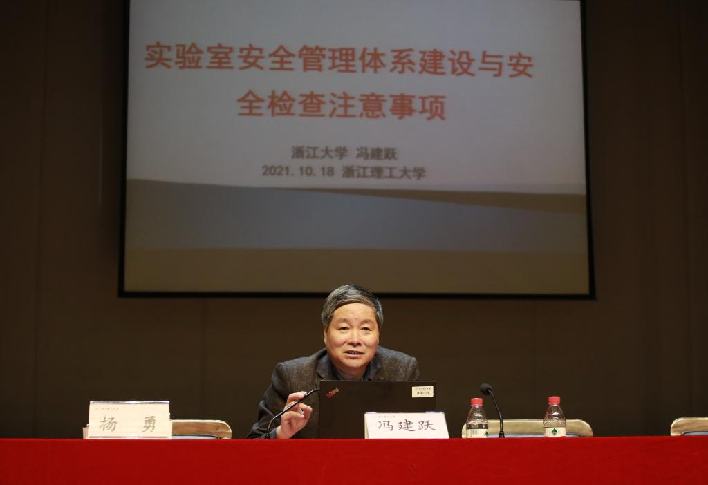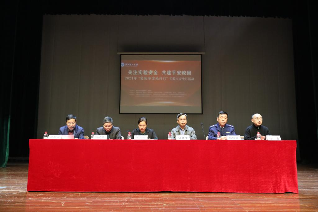 当日下午,“实验安全校园行”2021年实验室安全月开幕式暨实验室安全工作报告会在学生活动中心小剧场举行,副校长许慧霞、浙江省教育厅校园安全管理处处长胡惠华、杭州市市场监督管理局钱塘分局副局长朱信贞、浙江大学实验室与设备管理处原处长冯建跃、各学院实验室工作分管领导及相关职能部门领导出席会议,会议由资产与实验室管理处处长何邦进主持,相关实验室教师及学生近400人参加。