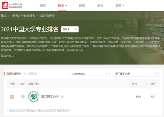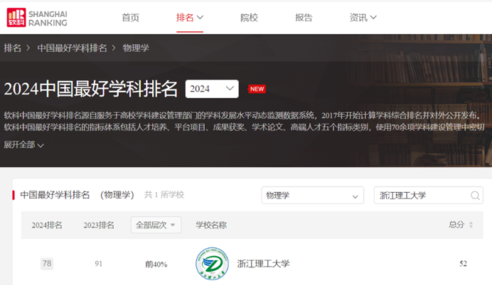 喜报!浙江理工大学物理学软科排名提升13名次