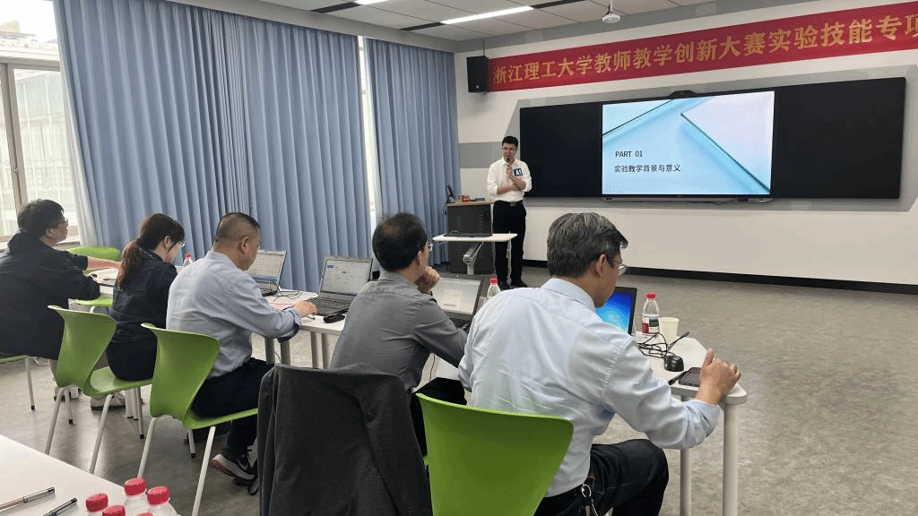 参赛教师围绕学情分析、教学痛点、教学改革路径、课程思政融合、创新成果推广及教学评价反思等维度进行系统展示。评审专家组依据大赛实施细则,从教学设计创新性、实验教学改革实效、设备研发应用价值等多维度进行综合考评,并针对课程资源建设、教学成果转化等关键环节提出建设性意见。