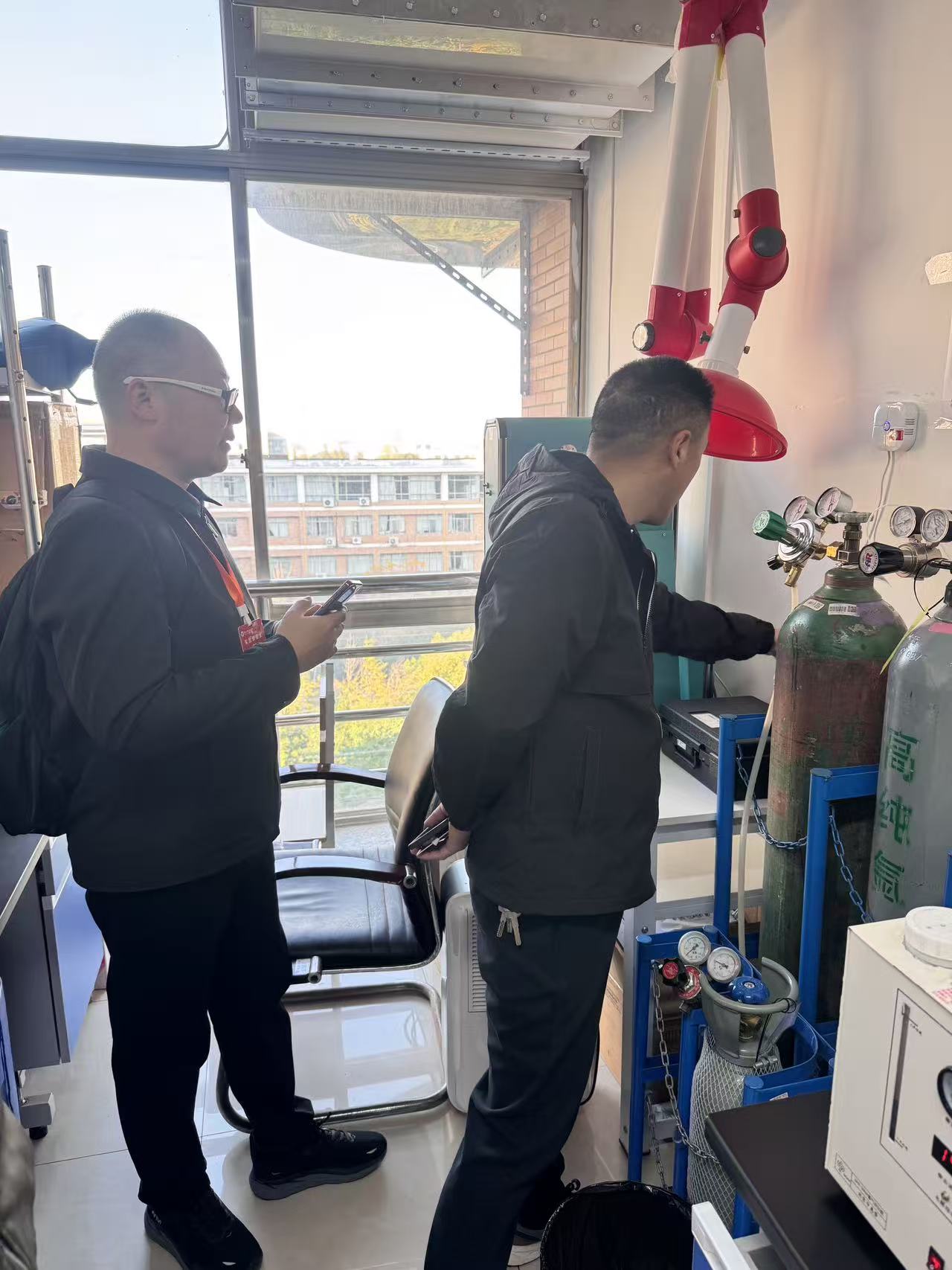 为切实加强校园实验室安全管理,防范化解实验气体日常存放和使用过程中的安全风险,保障全校师生生命财产安全与教学科研工作有序开展,2025年11月20日至21日,资产与实验室管理处特邀第三方安全检测机构,在全校范围内开展实验气体专项安全检查,重点覆盖高风险场景与密集存放区域,为实验室安全筑牢“防护网”。