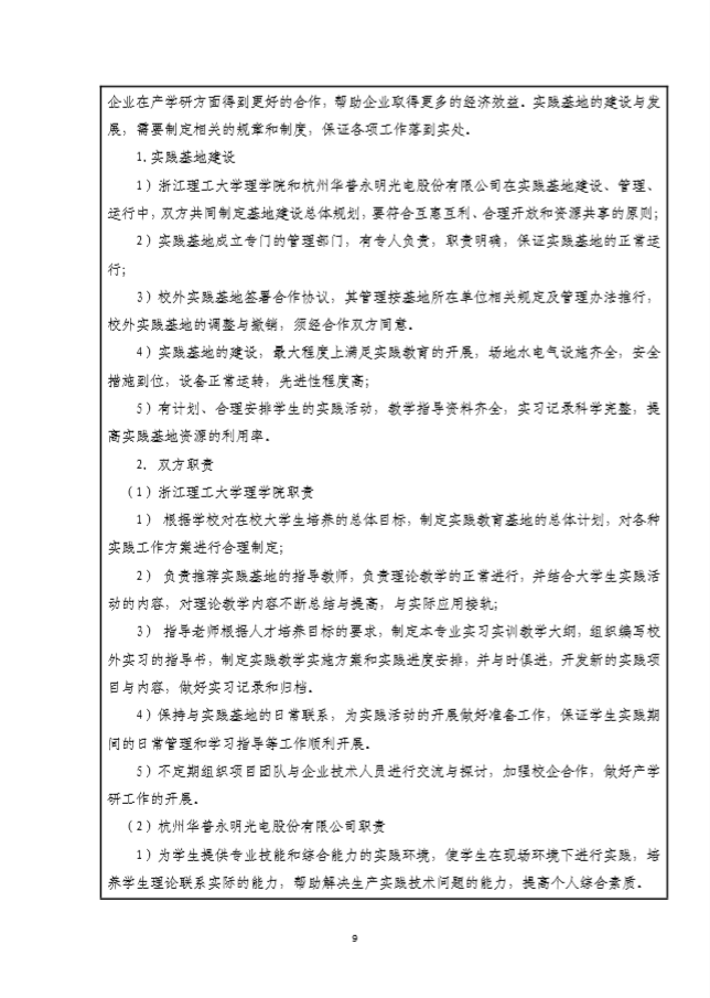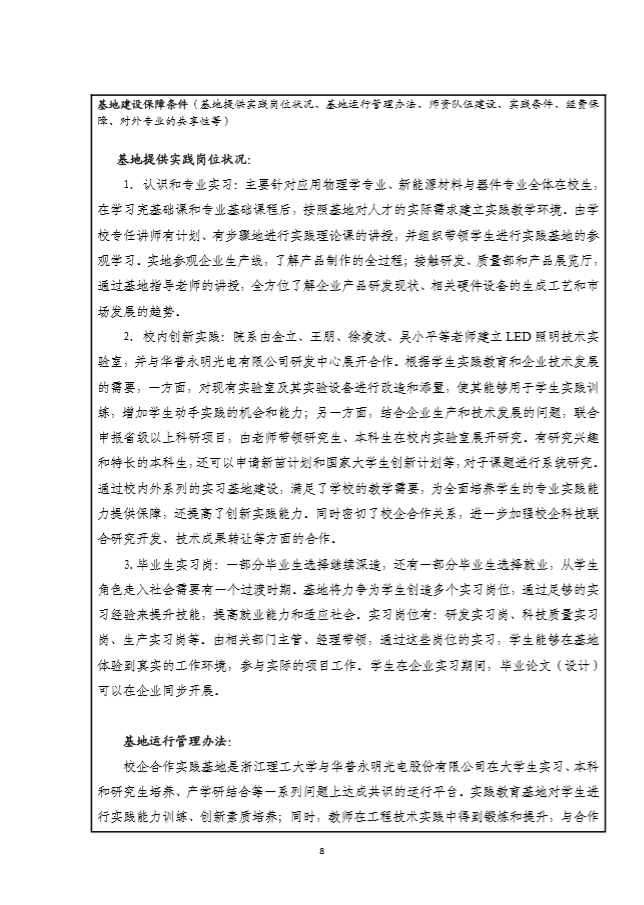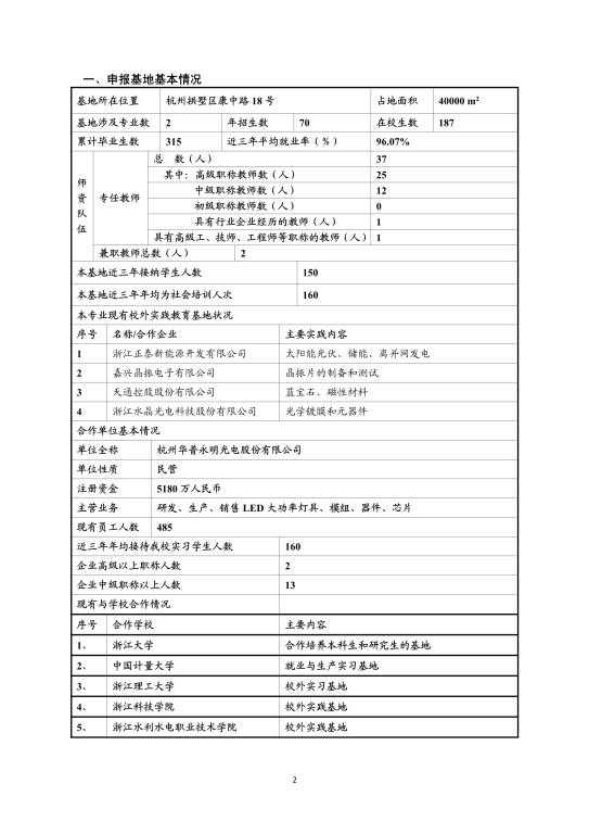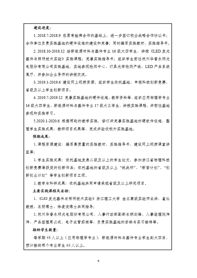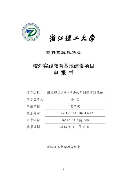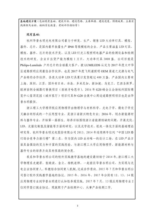 浙江理工大学2018年度校外实践教育基地建设项目申报书—杭州华普永明光电有限公司